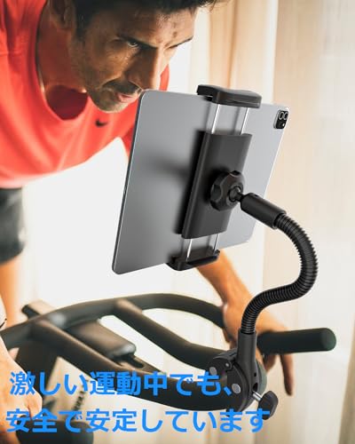 エアロバイク タブレット ホルダー アーム ipad スタンド フィットネスバイク アイパッドホルダー ハンドルバー ポール 取付 ベビーカー マイクロフォン 360度回転 安定性 取り付け容易 4-13インチ多機種対応:iPad Pro 12.9 11 9.7 Air mini / iPhoneなど