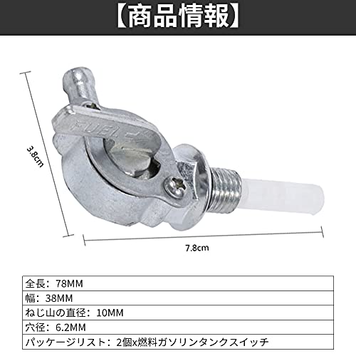 【商品情報】全長:78MM. 幅:38MM. 糸径:10MM . 穴径:6.2MM. パッケージリスト:2個x燃料ガソリンタンクスイッチ