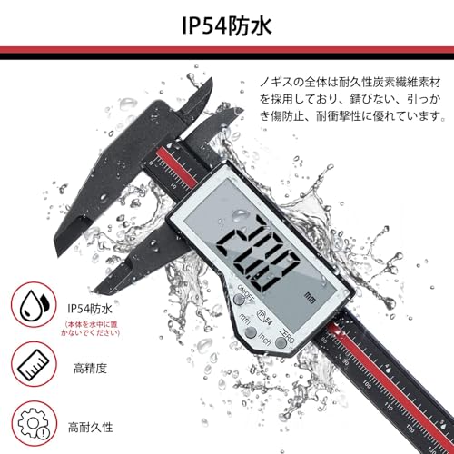 ノギスの全体は耐久性炭素繊維素材を採用しており、錆びない、引っかき傷防止、耐衝撃性に優れています。柔らかなカ一ボンフアイバ一を採用することで、測定対象品に傷を付けません。