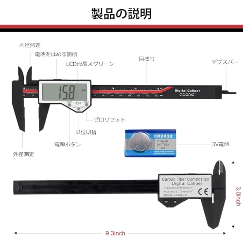正確な測定: 0.1mmの分解能、±0.2mmの精度で0-150mmを測定します。頑丈な炭素繊維複合材を採用し、防錆、擦り傷がなく、骨董品、宝飾品などの測定に適しています。