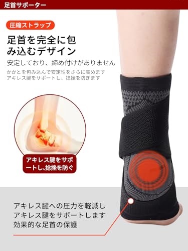 足首サポーター 固定 2枚セット アキレス腱 サポーター 薄型 安定サポート 圧力調整 通気性 伸縮性 衝撃吸収 立ち仕事 スポーツ用 ランニング バスケ サッカー 怪我防止 左右兼用 男女兼用 (ブラック XL)