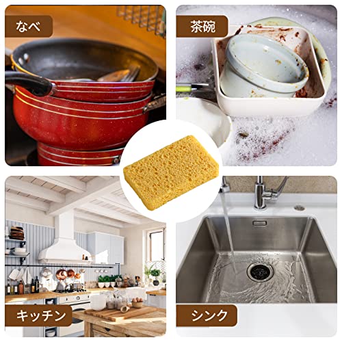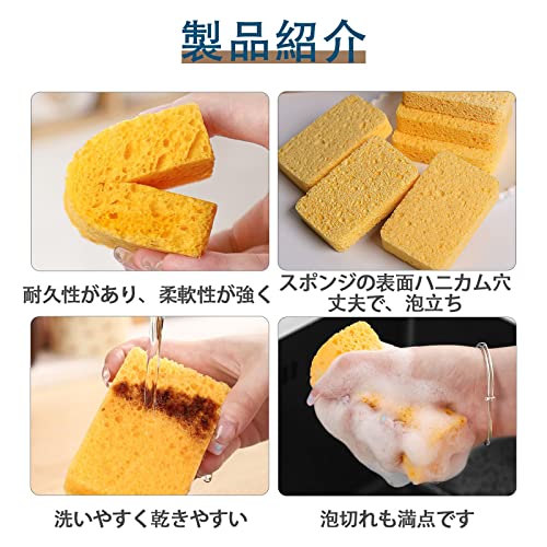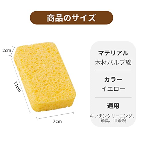 【商品仕様】:サイズ:約11cm*7cm*2cm(吸水前)、セット:10個;カラー:イエロー;材質:天然木材パルプ綿;特点:圧縮されたスポンジです。ハニカム構造なので、洗剤なしでも汚れスッキリ。抗菌、速乾、吸水、油汚れ落とし、長持ち、収納しやすく、キズをつけない。手にも環境にも優しいクリーナー。