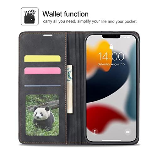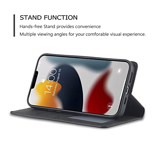 iPhone 14 ケース 手帳型 アイフォン 14ケース 高級PUレザー 皮革 TPU バンパー カード収納 スタンド機能 内蔵マグネット 耐衝撃 耐摩擦 上品 全面保護 人気 おしゃれ 財布型 カバー 6.1インチ ブラック 送料無料