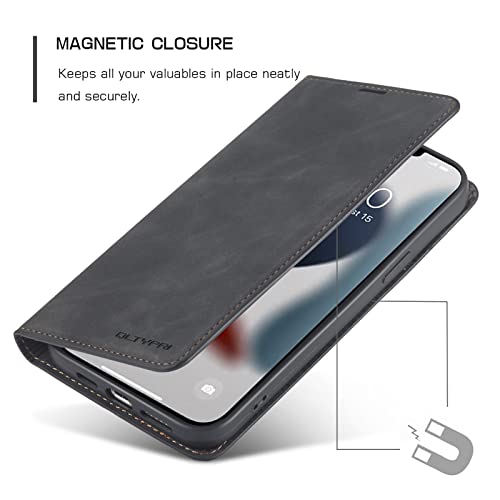 iPhone 14 ケース 手帳型 アイフォン 14ケース 高級PUレザー 皮革 TPU バンパー カード収納 スタンド機能 内蔵マグネット 耐衝撃 耐摩擦 上品 全面保護 人気 おしゃれ 財布型 カバー 6.1インチ ブラック
