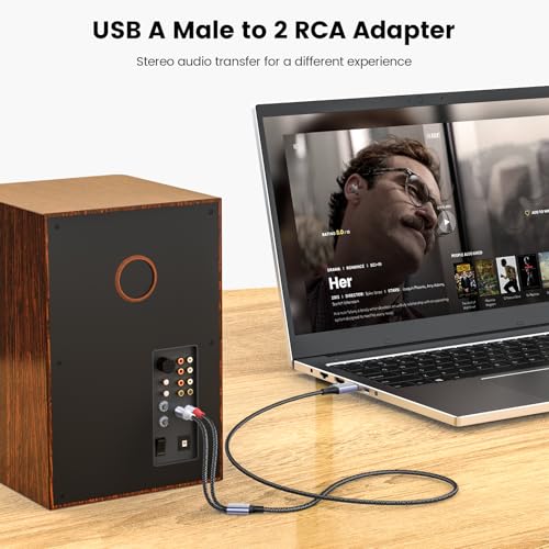 【プラグアンドプレイ】USB - デュアルRCAオーディオケーブルで、高速、プラグアンドプレイ、便利な左右接続が可能です。RCAコネクタは、信頼性を確保しながら、簡単に抜き差しできるハンドルを備えています。USBポートをコンピュータに差し込むと、コンピュータがオーディオケーブルに変換します。シンプルなUSB接続、追加のドライバは必要ありません。