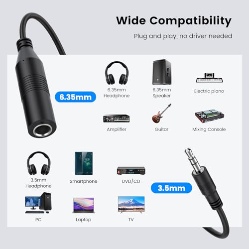 【プラグ&プレイ】 1/4-1/8アダプターケーブルは、ソフトウェアのダウンロードが不要で、持ち運びが簡単です。この3.5mm-6.35mmアダプターケーブルがあれば、どこでもハイファイオーディオの世界を楽しむことができます