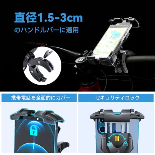 【360度調整&全天候対応】原付 スマホホルダーとしても使える耐候性設計。防水・防錆処理で屋外放置OK。縦横自由な角度調整可能な自転車 スマホホルダー。地図確認から動画視聴まで、ツーリングからデリバリーまで多用途活用。