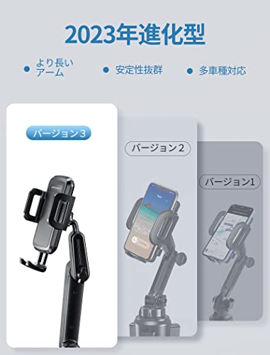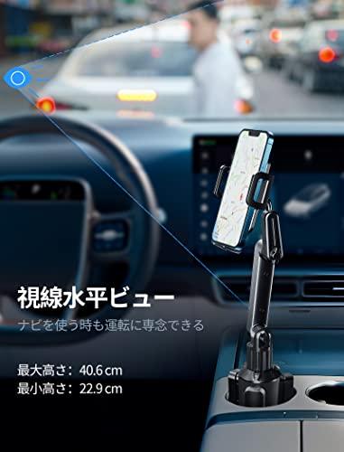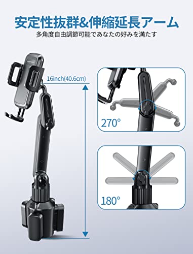 スマホホルダー 車 ドリンクホルダー 車載ホルダー カップホルダー スマホスタンド 多角度調節アーム 車載 携帯ホルダー カー用品 片手操作 ハンズフリー ワンタッチ取り外し 縦 横 上下 左右自在調節 360度回転 スマートフォンホルダー iPhone 16 Pro Max / Galaxy S24 Ultra 多機種対応 (ブラック)