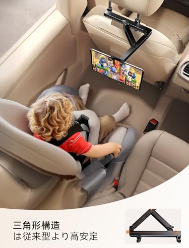 【お子様の車内ぐずり対策に最適!】長距離ドライブ中の「後ろ座席のぐずり」「運転への集中妨害」でお困りではありませんか?後部座席用タブレットホルダーなら、アニメ鑑賞やゲーム遊びに夢中になるお子様をサポート。車内が静かになり、ドライバーも安心して運転に集中できます。