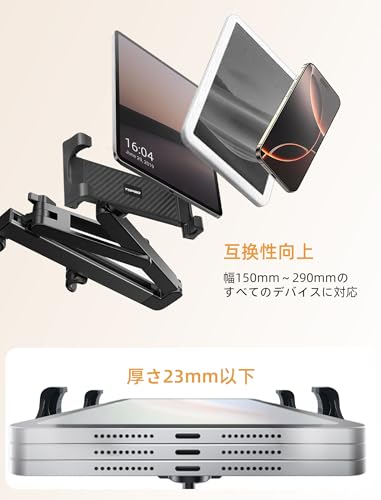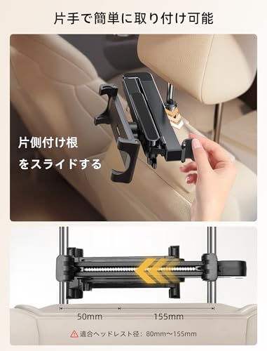 【取り付け簡単・工具不要 】ヘッドレストホルダーは3秒で簡単取り付け・取り外しが可能。別の車への付け替えもラクラクです。、8-15cmのヘッドレストバーに取り付け可能です。工具不要で簡単に取り付けられ、後部座席の乗客が使いやすい位置にデバイスを調整で