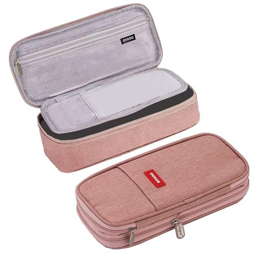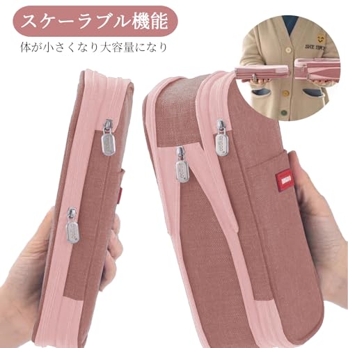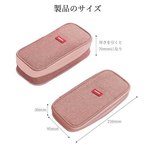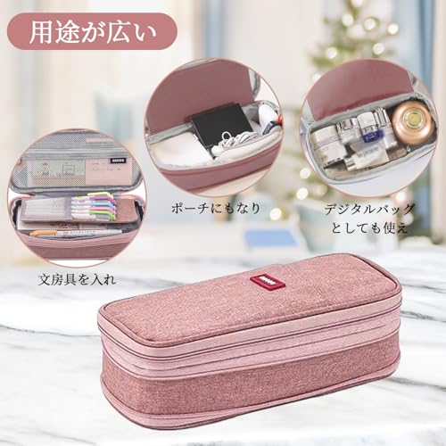 ペンケース 大容量 筆箱 収納ポーチ ふでばこ 横開き 2層 ジッパー 多機能 おしゃれ シンプル 強力な分類と収納力 使いやすい 文具 ガジェット 収納 大人 小学生 中学生 高校生 男の子 女の子 (ピンク)