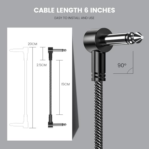 パッチケーブル ペダルボードケーブル 1/4インチ ギターパッチ補助ケーブル直角ギターエフェクトペダルケーブルは エレキギター ベースギターと互換性がある 3パック 6インチ 送料無料