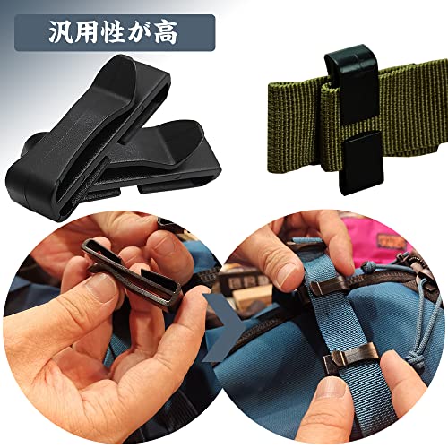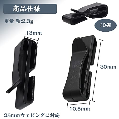 ベルトクリップ テープクリップ 補助バックル 25MM 幅テープに適用 ベルト調整 ウェビングキーパー 便利 アウトドア用 楽に固定する 軽量 樹脂クリップ ウェビングストラップ用 ブラック 10個セット