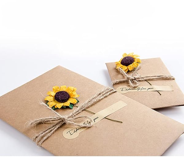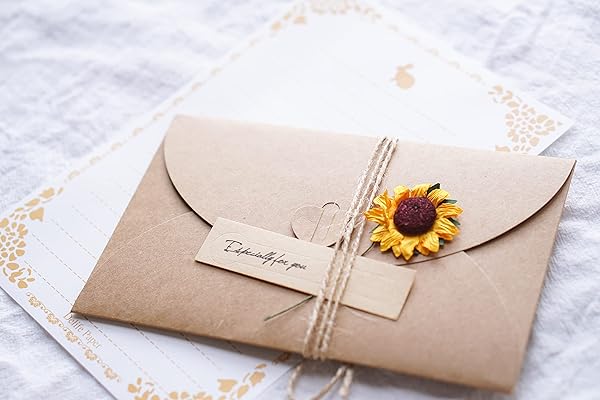 厚みのある上質紙で作られた封筒や便箋セットです。ひまわりの造花などもついており、とても綺麗で上品なレターセットです。