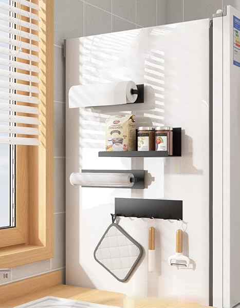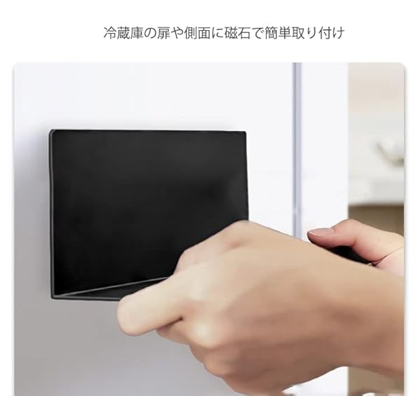 冷蔵庫 サイドラック 調味料 スパイスラック キッチン収納 2個セット 調味料収納 マグネット式 強力磁石 冷蔵庫対応 落下防止 ブラック