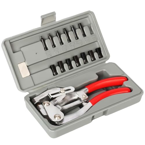 【16ピースパッケージの内容】1xホールパンチプライヤー、1xウォッシャー、14xチップ(オスとメス)