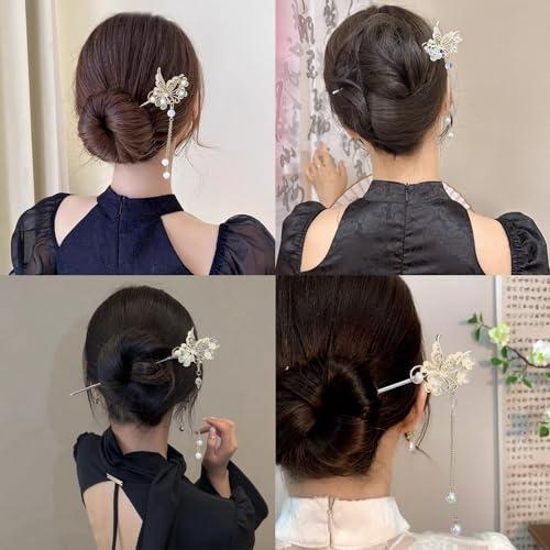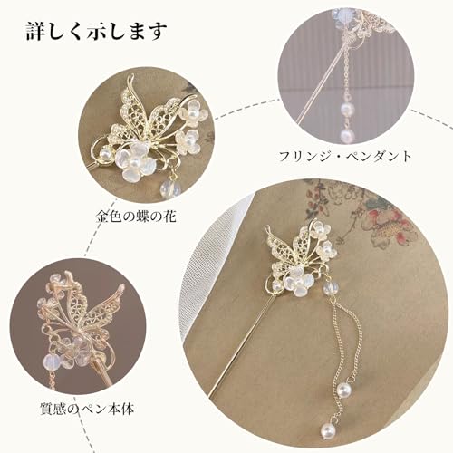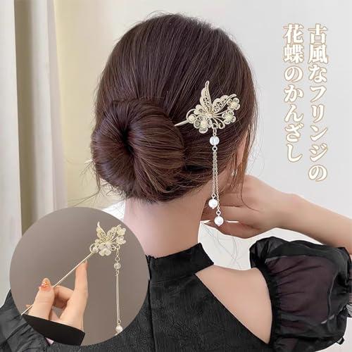 【シンプルなデザイン】簪のデザインはエレガントでファッショナブルで,簪に人気モチーフの蝶々フラワーデザインは日本の和の伝統的女性の美を演出してくれます,とてもチャーミングで美しいです。
