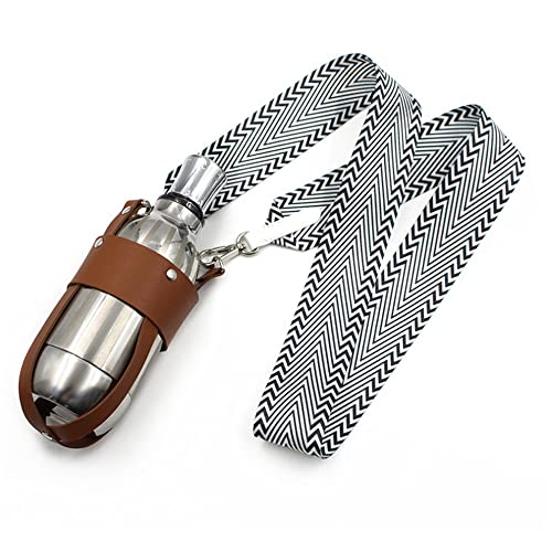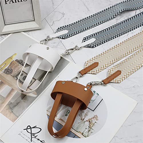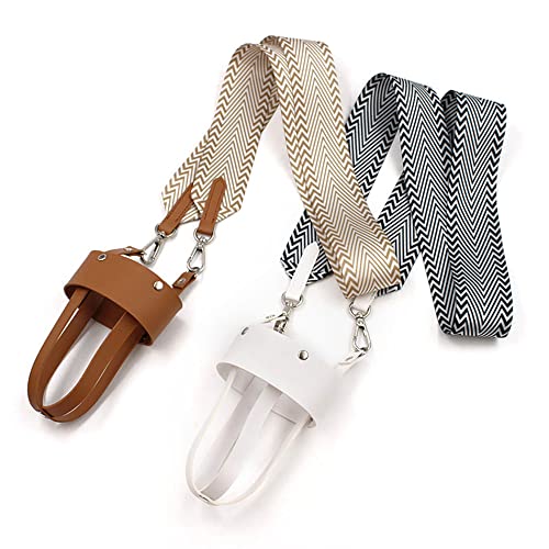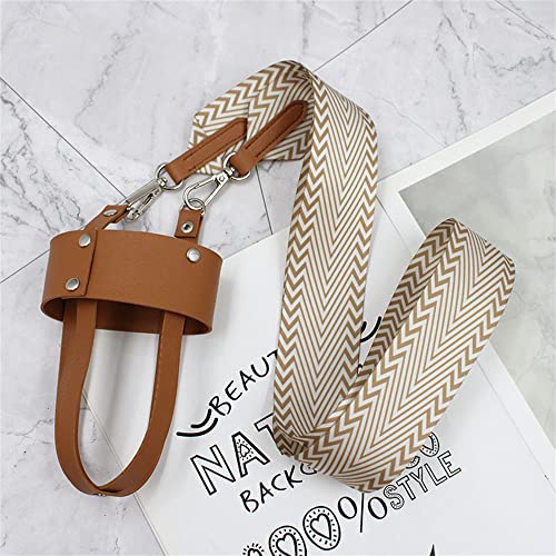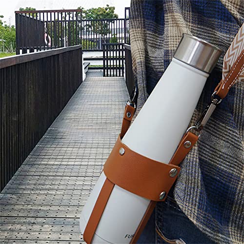 ドリンクカップホルダー 持ち歩き 水筒カバー ペットボトルホルダー ショルダー 肩掛け PUレザー カップホルダー 革 幅広ベルト おしゃれ 登山 旅行 散歩 (ブラウン)