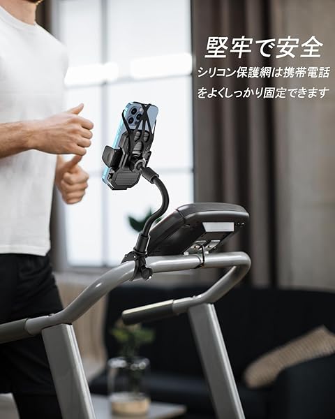 グースネック エアロバイク スマホホルダー自由曲げ可能 スマホ アーム 携帯片手操作とスマートフォンホルダー フィットネスバイク ホルダー ルームランナー 携帯ホルダー室内バイク スピンバイク ベビーカー自転車 ランニングマシン用 iPhone ホルダー 振動吸収 脱落防止 ゴム 4.7〜6.8インチ全機種対応 iPhone 14 14pro 14pro max 13 12 11