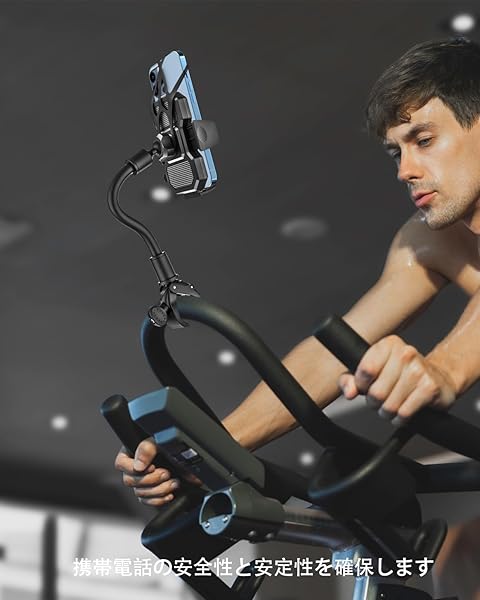 グースネック エアロバイク スマホホルダー自由曲げ可能 スマホ アーム 携帯片手操作とスマートフォンホルダー フィットネスバイク ホルダー ルームランナー 携帯ホルダー室内バイク スピンバイク ベビーカー自転車 ランニングマシン用 iPhone ホルダー 振動 ...