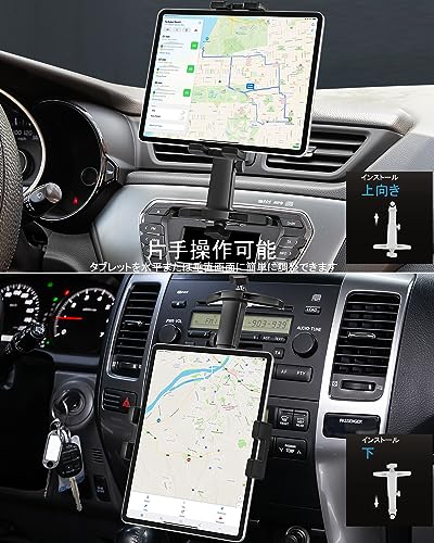 車 CDスロット タブレットホルダー タブレットスタンド 車載ホルダー 全車種対応 タブレット 車 安定性アップ タブレット ホルダー 360度回転 伸縮アーム タブレットとスマートフォン4.7〜13インチ全機種対応 iPad Pro 9.7 11 12.9 インチ / iPad Air Mini 5 4 3 2 / iPhone