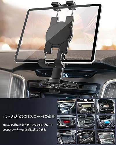 車 CDスロット タブレットホルダー タブレットスタンド 車載ホルダー 全車種対応 タブレット 車 安定性アップ タブレット ホルダー 360度回転 伸縮アーム タブレットとスマートフォン4.7〜13インチ全機種対応 iPad Pro 9.7 11 12.9 インチ / iPad Air Mini 5 ...