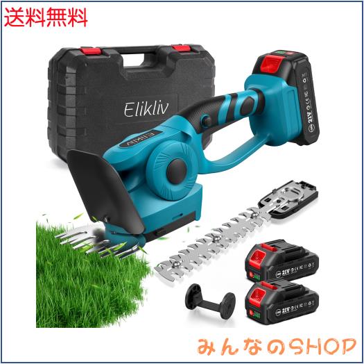 Elikliv 芝刈り機 電動 芝生バリカン 充電式ヘッジトリマー 剪定トリマー コードレス 1台2役 トリマー刈幅220mm 最大切断径7mm バリカン