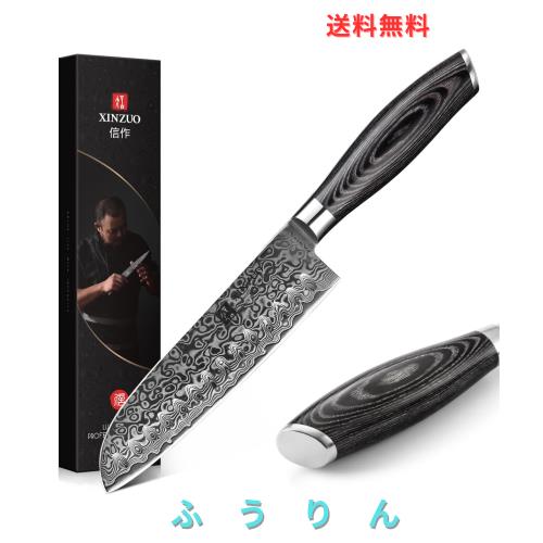 XINZUO 17.8cm 三徳包丁67層ダマスカス鋼Santokuナイフダマスカス鋼キッチンナイフ-多機能シェフナイフ調理ナイフ-ダマスカス野菜ナイフ-