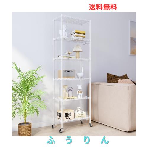 NATRKE メタルラック 6段 ホワイト キャスター付き スチールラック スチールシェルフ ワイヤーラック 置物架 大容量 防錆 傷つきにくい