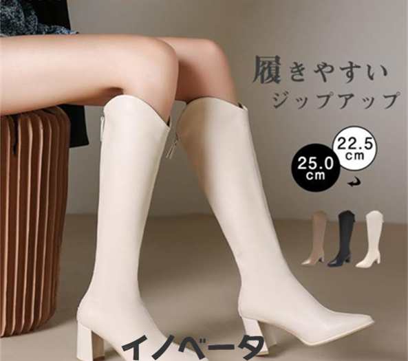 ロングブーツ レディース ブーツ ロング丈 ハイヒール フラット ジップアップ 美脚ブーツ 歩きやすい トレンド 痛くない 抗菌除臭 春秋