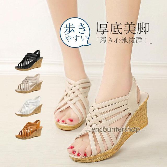 サンダル レディース ウエッジソール オープントゥ 女性 ウエッジソールサンダル ストラップサンダル ハイヒール