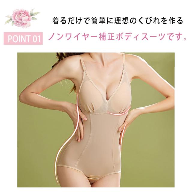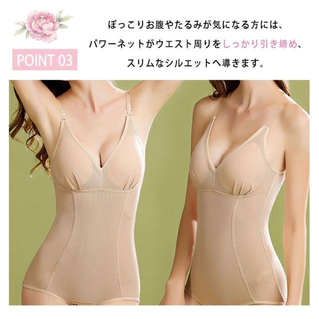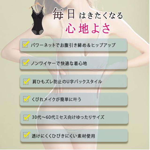 ボディスーツ レディース ノンワイヤー 補正下着 くびれメイク 伸縮性 ゆったりサイズ 補正インナー ミセス 30代 40代 50代 60代 お腹引き締め ウエストスリム ぽっこりお腹対策 パワーネット ヒップアップ 苦しくない スリムアップ 大きいサイズ