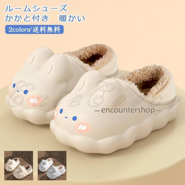 ルームシューズ レディース スリッパ 可愛い兎 裏起毛 靴 シューズ 室内履き ボア もこもこ ふわふわ 暖かい 秋冬 防寒 かかと付き きれいめ おしゃれ