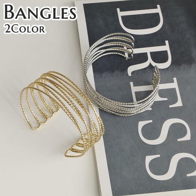 バングル レディース アクセサリー ブレスレット 太め ワイド 幅広 ワイヤー おしゃれ かわいい 大人 上品 きれいめ エレガ