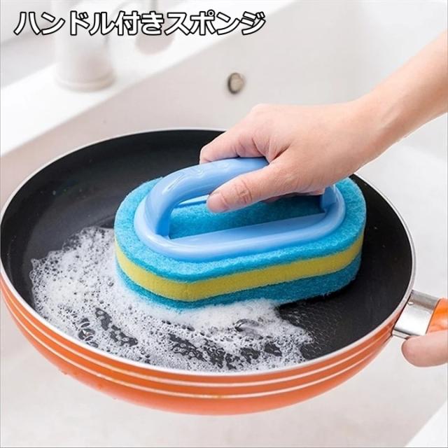 スポンジ ハンドル付き 持ち手付き キッチン用品 食器洗い バス掃除 お風呂場 シンク 洗面台 手荒れ防止 掃除 便利グッズ