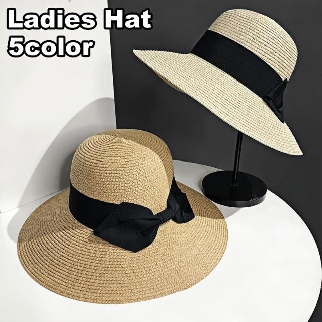 麦わら帽子 ストローハット レディース 女性用 つば広 ぼうし UV対策 紫外線対策 日除け おしゃれ かわいい シンプル カジ