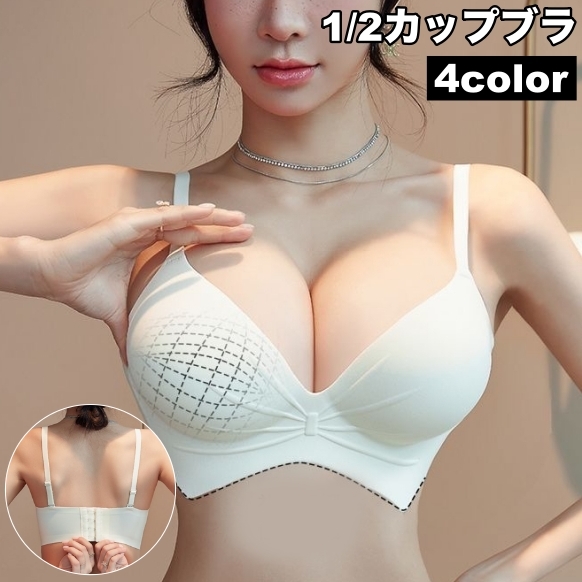 ブラジャー 厚手パッド 8cm 1/2カップブラ レディース 女性 下着 インナー 脇高 4段ホック セクシー 無地 シンプル