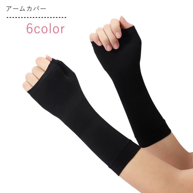 アームカバー レディース 女性 ファッション雑貨 日焼け防止 UVカット ミディアム丈 指出し 無地 ホワイト グリーン ブラッ