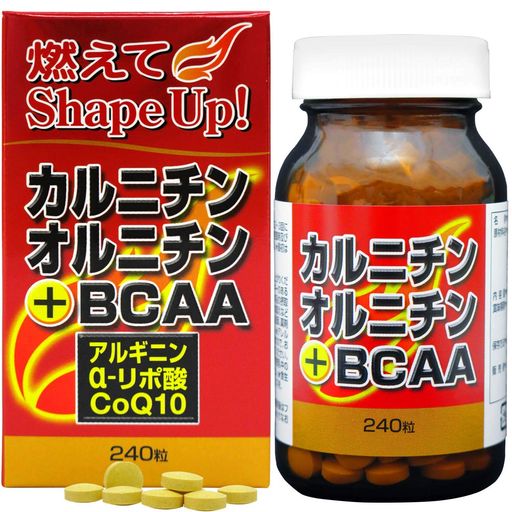 ユウキ製薬 カルニチン オルニチン + BCAA 約30-40日分 240粒 サプリ アルギニン ロイシン コエンザイムQ10