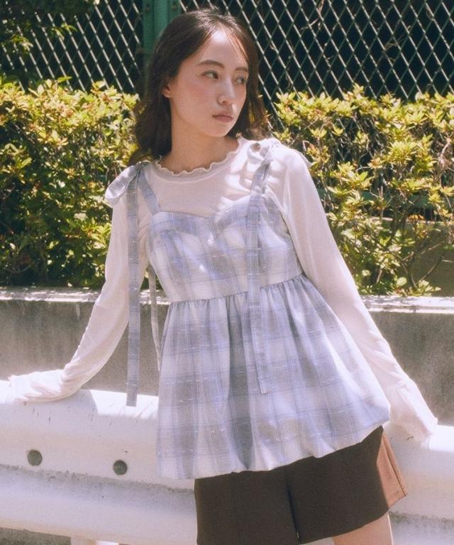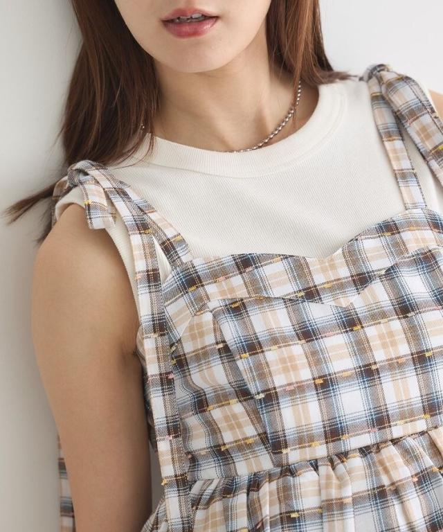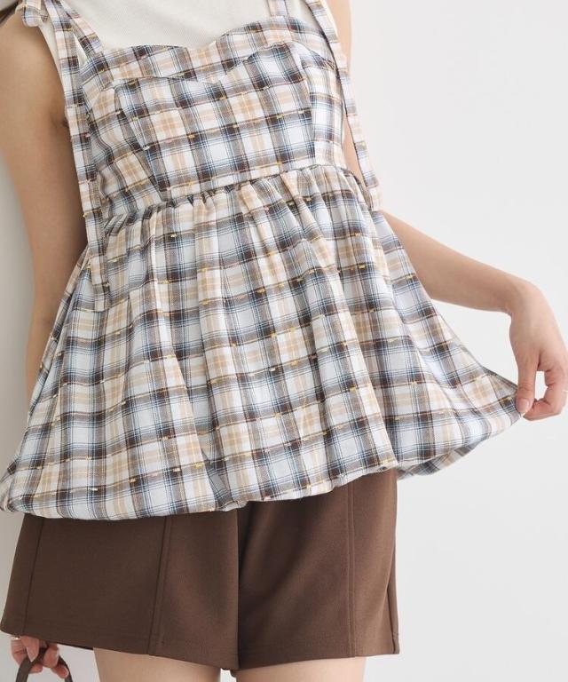 チェックパターンバルーンキャミビスチェ