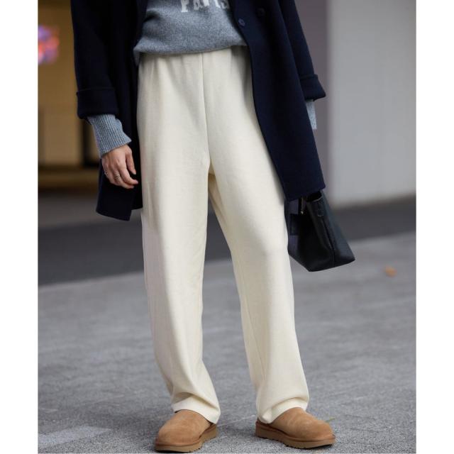 腰回りにゆとりを出し、ニットパンツでも体型が出にくい形を目指しました。