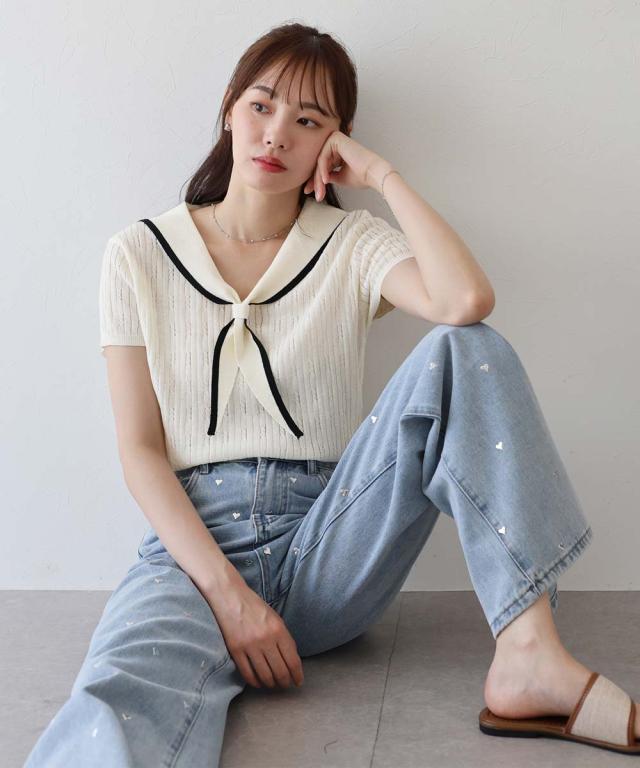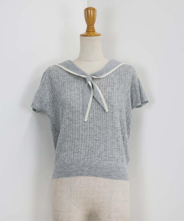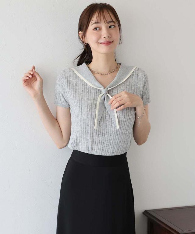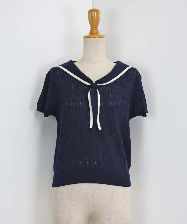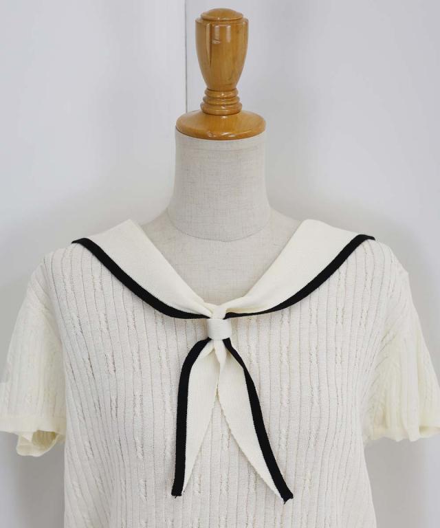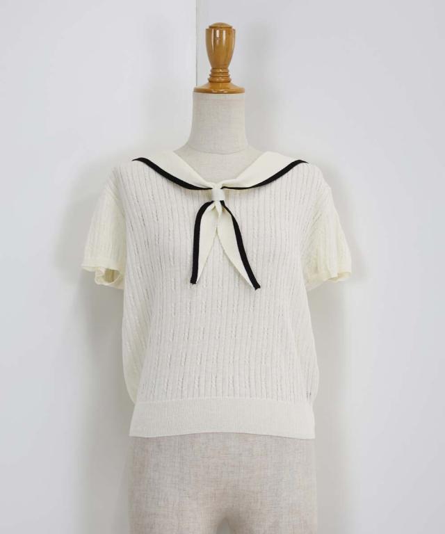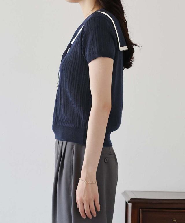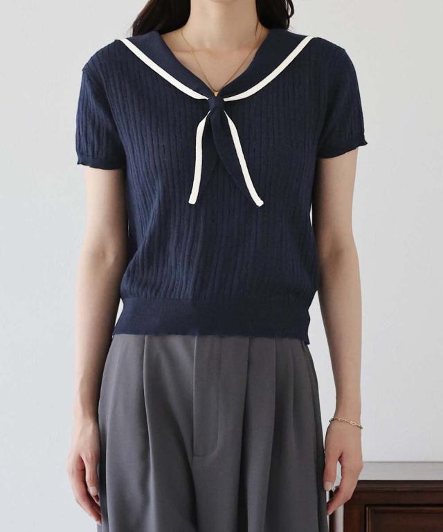 セーラーカラーとボウタイで大人ガーリ?なサマーニット