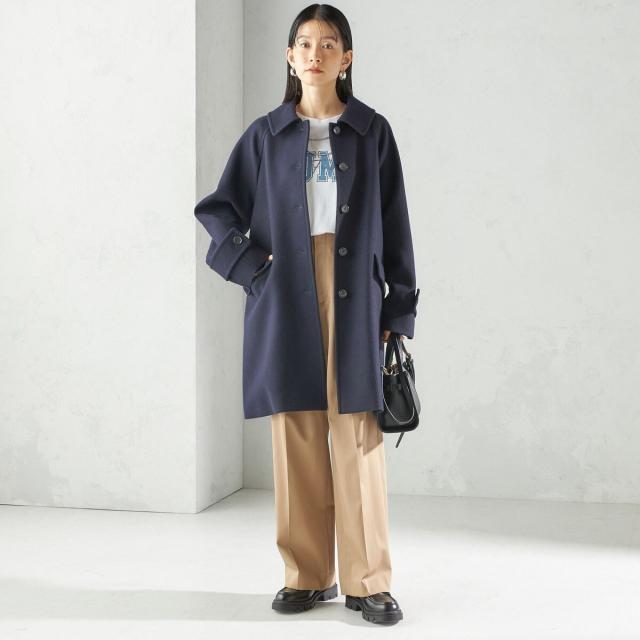 フロントの玉縁ポケットや、ウエスト切り替えのないミニマルなウエストデザインですっきりとした印象に仕上がります。