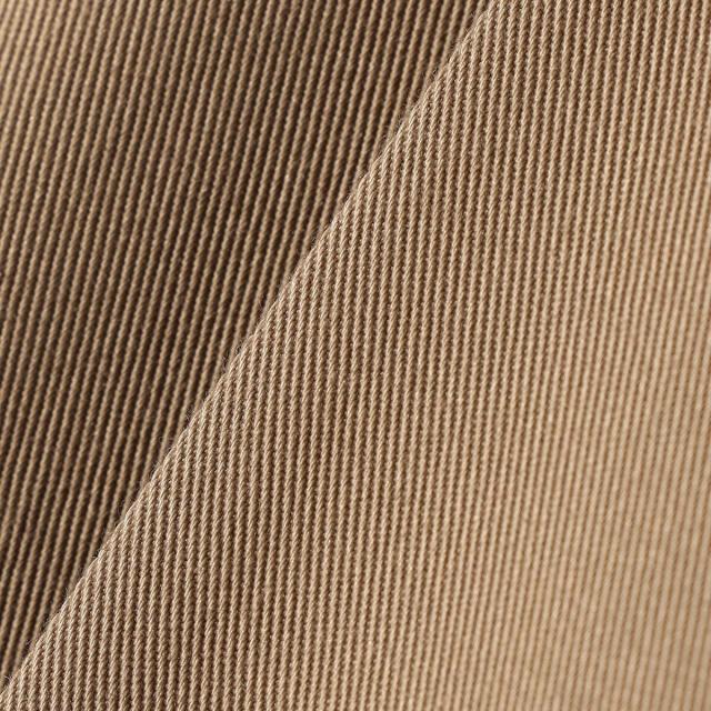 毛羽を抑えたコンパクト糸を使用し、高密度に打ち込んだハイカウントツイルに液アン加工を施して素材に柔らかさを出しました。