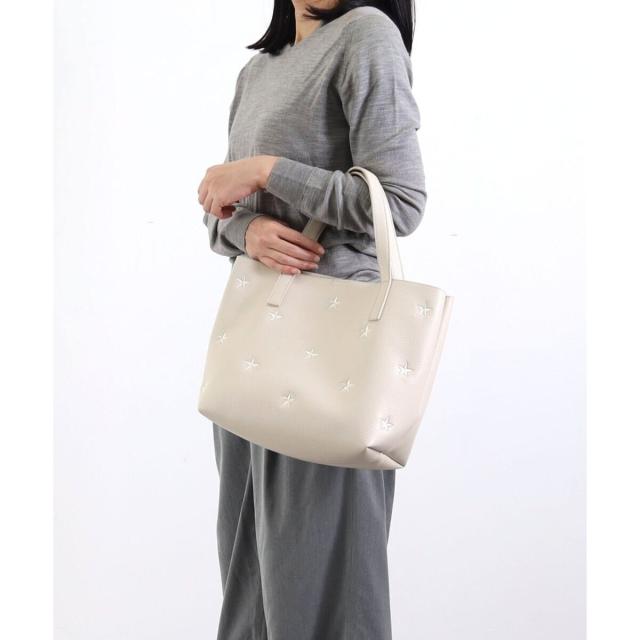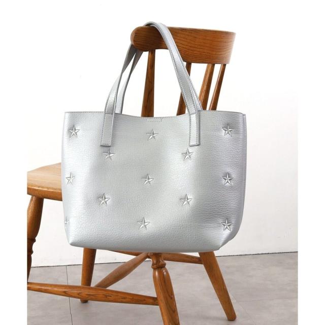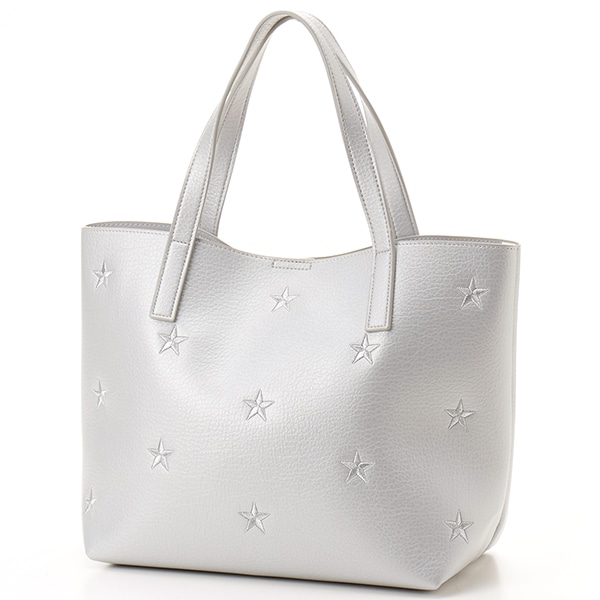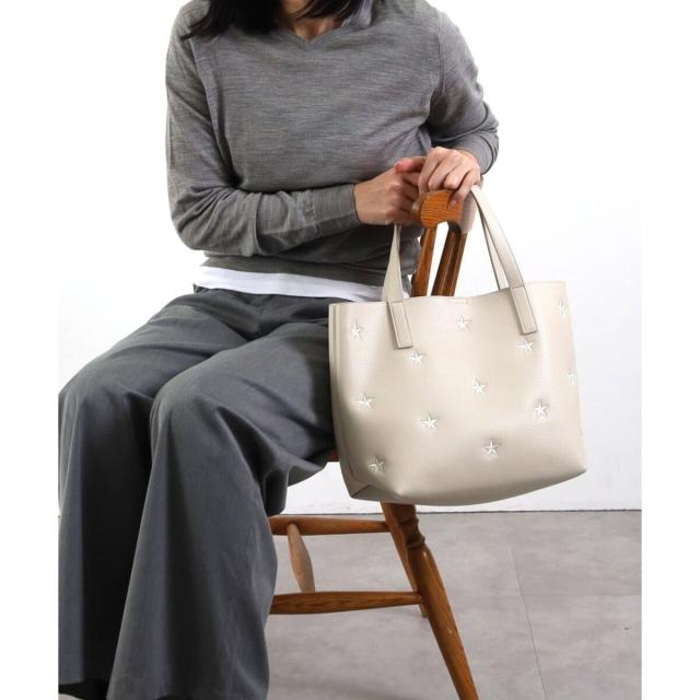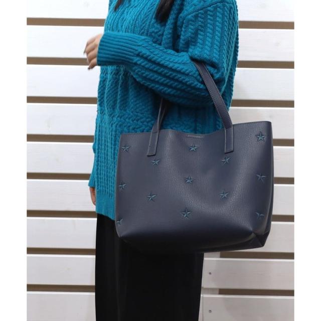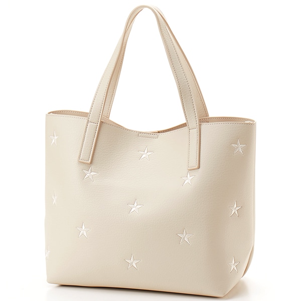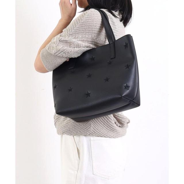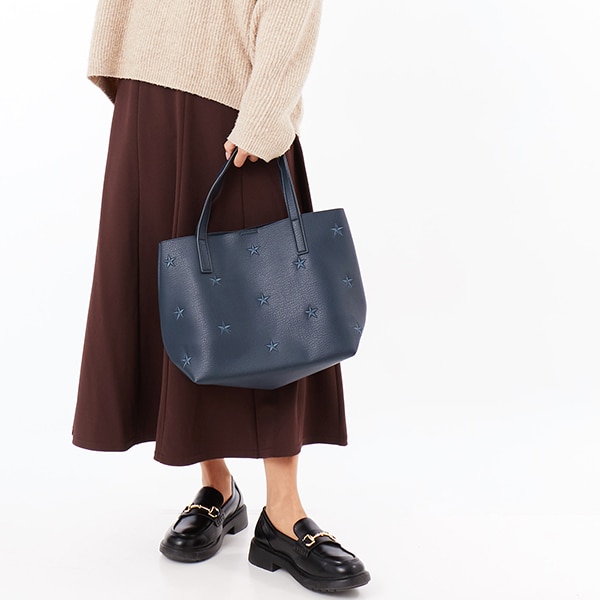 星柄刺繍フェイクレザートートバッグ/A4対応