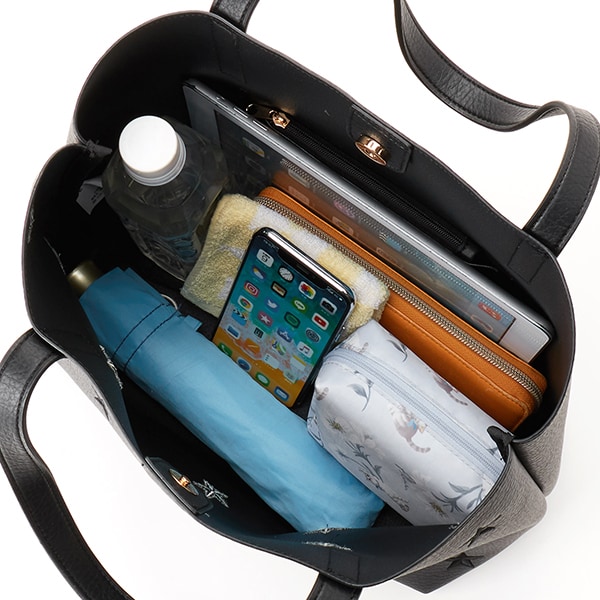 手帳やポーチ、長財布など必要な物もしっかり入る大容量。