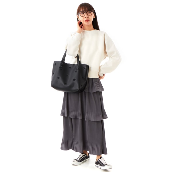 星柄刺繍は本体と同色になっていて大人っぽいスタイリングにもピッタリ。