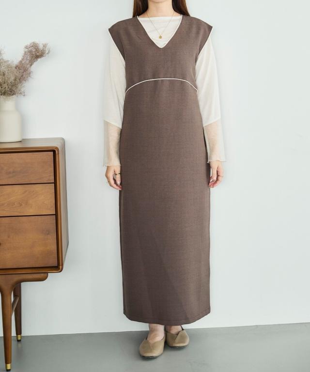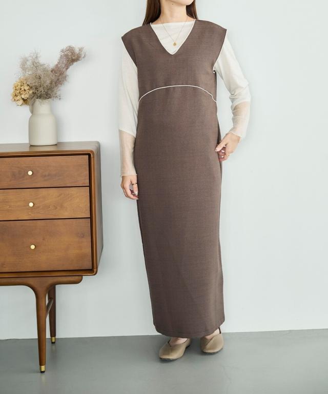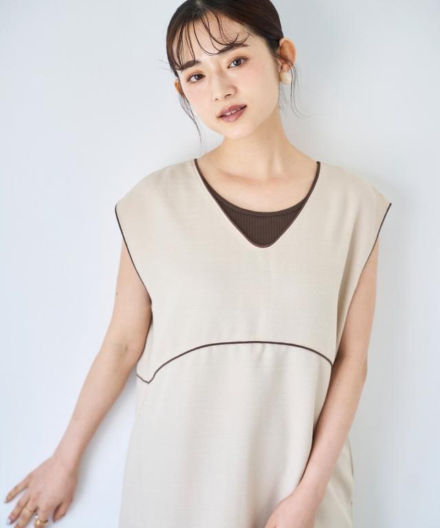 配色パイピングがアクセントのノースリーブジャンスカが登場。