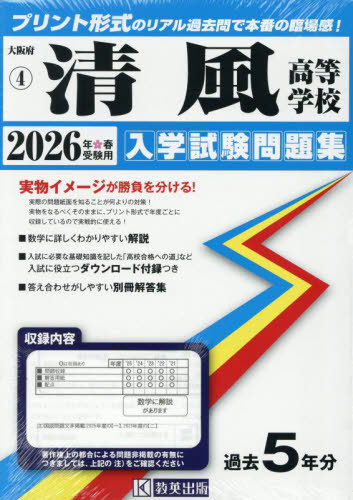 [書籍]/清風高等学校 入学試験問題集 2026年春受験用 プリント形式のリアル過去問で本番の臨場感! (大阪府 入学試験問題集 4)/教英出版/NEOBK-3113630