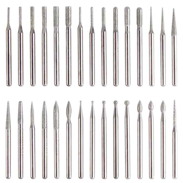 Kimlonton30本入り ダイヤモンドビット ミニルータービット リュータービット ダイヤモンドヤスリ 3.0mm軸 超硬バー 研削工具 切削 研磨用 ペンルーター用 研磨ビット 種類豊富 DIY工具 PVCボックス付き